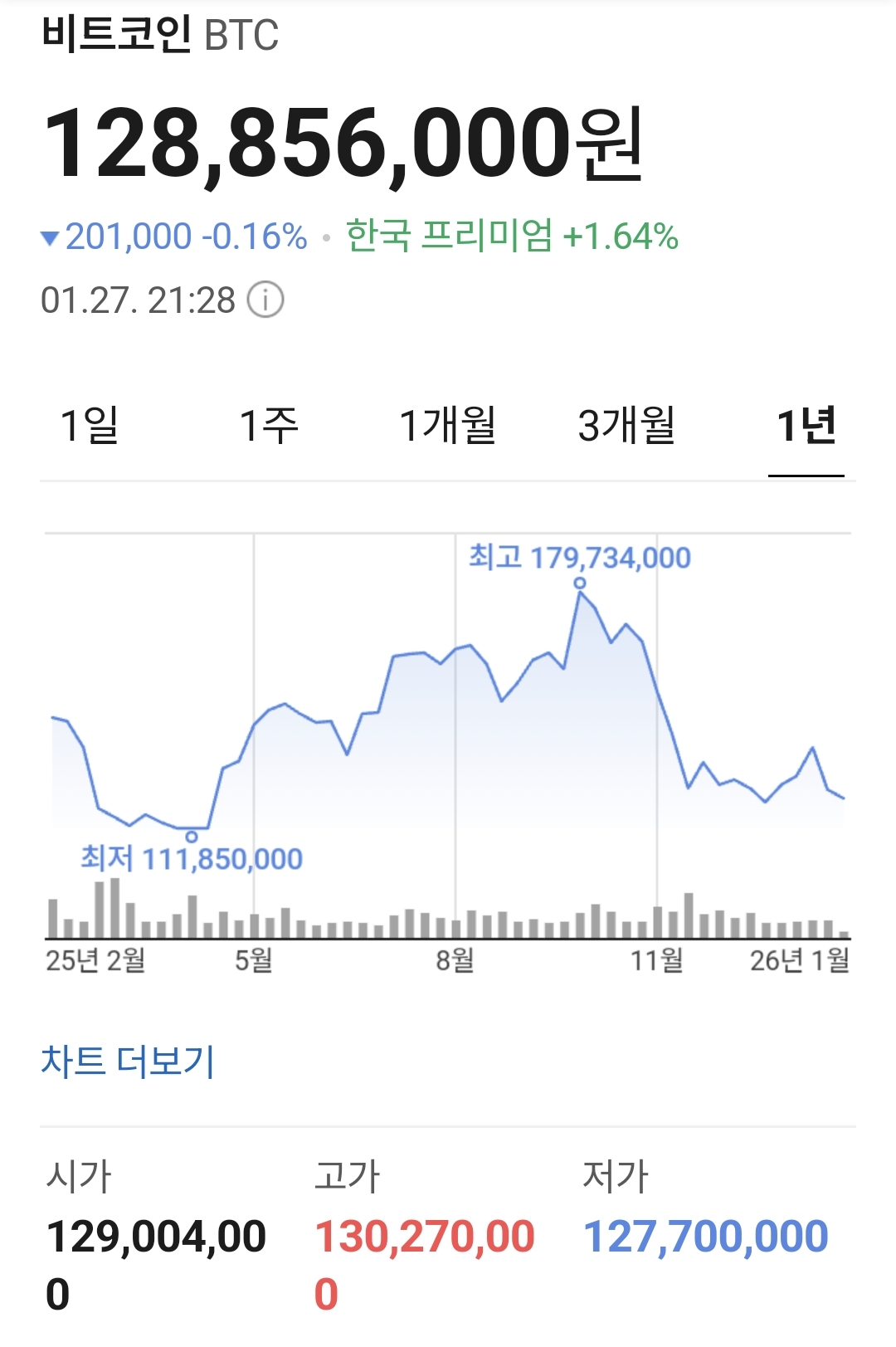 현시점 비트코인은 1억 2천대