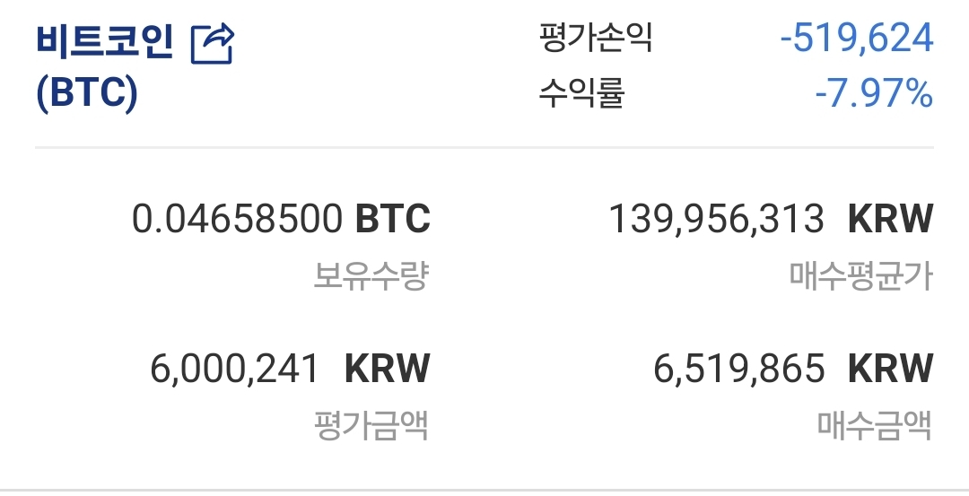 내 비트코인 평단가는....