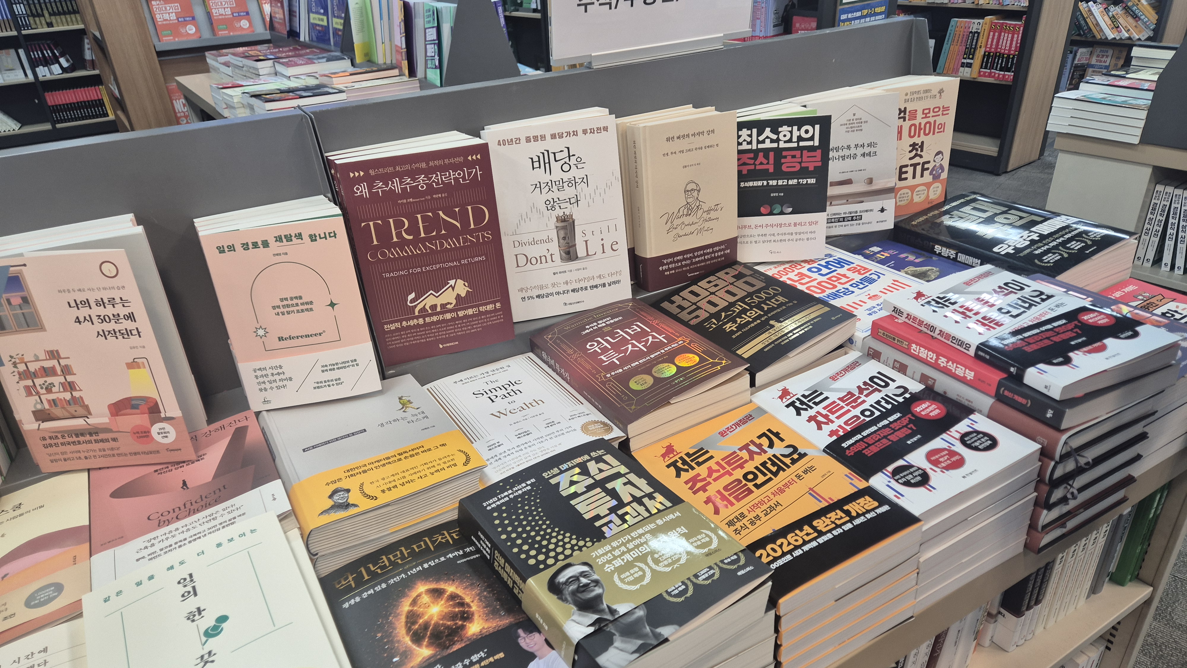쉬는날 지역에서 가장 핫한 서점에 들렸는데 비트코인 인기가 예전만 못한듯. 비트코인 관령서적이 1권보일까 말까. 요세는 배당주나 주식 쪽이 잘나가는거 같다.